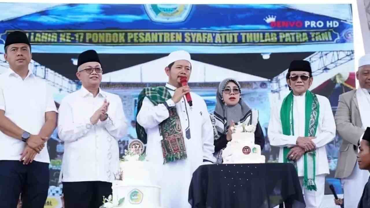 Ogan Ilir, NUSALY — Pondok Pesantren (Ponpes) Syafa’atut Thulab yang berlokasi di Desa Bakung, Kecamatan Indralaya Utara, Kabupaten Ogan Ilir, baru-baru ini merayakan hari jadinya yang ke-17. Perayaan Milad atau Harlah ke-17 Ponpes ini berlangsung meriah dan dihadiri ribuan tamu undangan. Acara tersebut semakin istimewa dengan kehadiran tokoh ternama, yaitu “Si Raja Dangdut” Rhoma Irama, yang menjadi tamu kehormatan dan menarik antusiasme besar dari para hadirin.